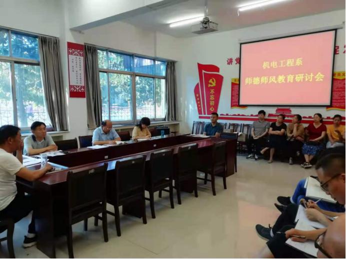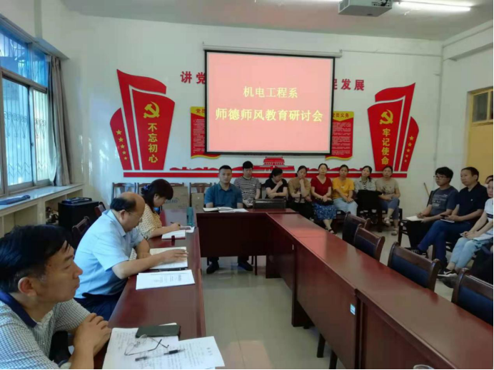 为深化党史学习教育,进一步加强师德师风建设,6月22日下午,机电工程系召开师德师风座谈会。机电工程系领导班子成员出席会议,全系教职工参加会议。