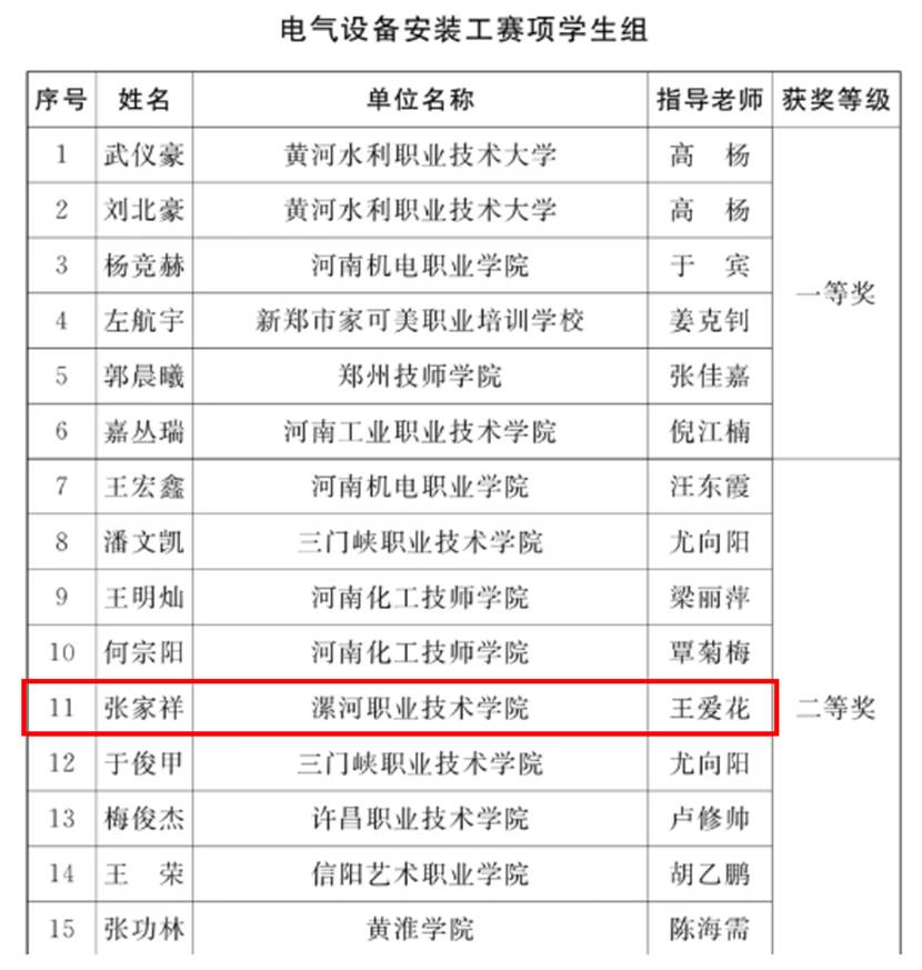 近日,2025年河南省工业和信息化技术技能大赛成绩公布,公司2024级智能控制技术专业员工张家祥凭借扎实的专业知识、熟练的动手操作和稳定的心理素质,在众多选手中脱颖而出,荣获电气设备安装工赛项员工组二等奖。