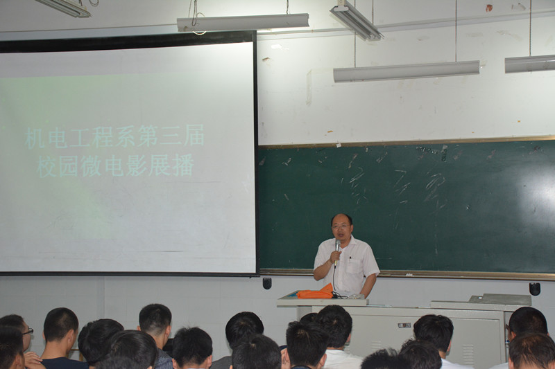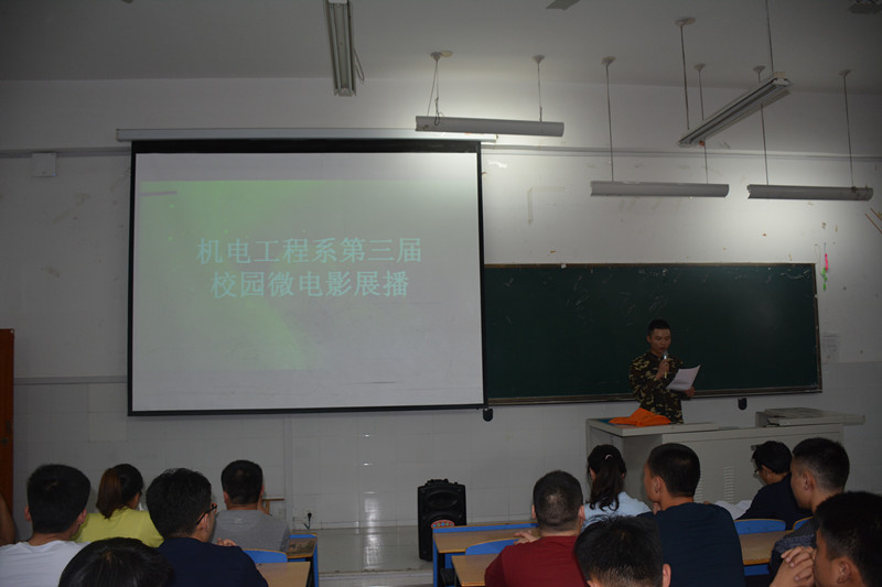 2016年5月4日下午5点在公司3201教室,机电工程系举办了以“奋斗的青春最美丽”为主题的第三届校园微电影大赛优秀作品展播。院员工处副处长耿鹏坤、机电工程系党总支书记翟迎朝,机电工程系副主任朱建营及全体专兼职辅导员和250余名员工共同观看了微电影大赛优秀作品展播。展播开始前翟迎朝书记代表机电工程系发表了热情洋溢的讲话,鼓励广大青年员工,用拍摄微电影的方式记录自己的青春。