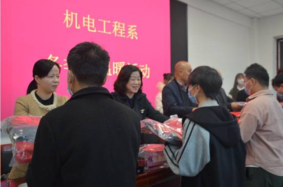 机电工程系主任冯凯介绍了此次活动的目的和组织情况。系党总支书记翟迎朝宣读了受资助员工名单。与会领导现场为受资助员工发放量身定做的冲锋衣,一件件寓意着温暖和积极奋进的红色冲锋衣为困难员工送去关爱和温暖,点燃了员工奋斗的激情。
