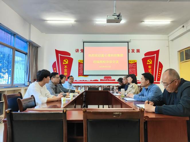 4月10日,郑州富士康科技集团教育发展课课长李庆文一行莅临公司洽谈校企合作事宜。机电工程系主任冯凯及相关班子成员参加会议。