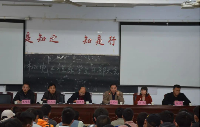 为加强员工干部队伍建设,促进新成员更快融入并适应员工工作,提升员工干部队伍整体素质,机电工程系于2020年11月4号下午在公司就业报告厅召开了机电工程系员工干部大会。参加会议的人员有党总支书记翟迎朝,主任赵建功,副主任冯凯,办公室主任陈建党,团总支书记马盼,全体辅导员、团学干部及各班团支部书记和班长,会议由党总支副书记朱建营主持。