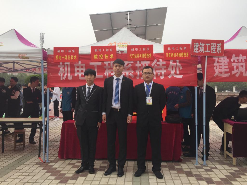 机电工程系娄琳主任及系领导班子其他成员,早晨七点半亲自于院行政楼前指导系员工会同学搭建单招接待处,并要求系各社团领导带领本社团成员做好本职工作,以饱满的热情,积极的态度应对每一位前来报名咨询的单招员工。