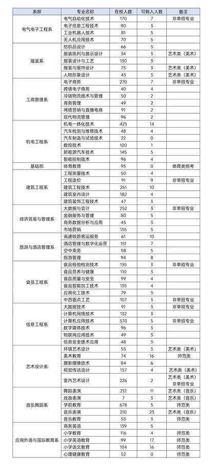 2024级各专业可接纳转入员工计划